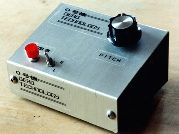 音高の範囲を2段階で切り替えられるスイッチがあります。 また最初期(1981年頃)の音のテイストを忠実に再現するため、中の回路は 空中配線、ゲルマニウム・トランジスタ を使用しています。 2008年に、本の撮影で登場しましたが、現在は倉庫でゆっくり休んでいます。 |