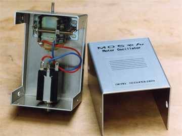 ダイナオシレーターに続く、モーター・シリーズ。今回はプラモデル工作の定番、マブチ130モーターを搭載。それを回すことによって生じる電気を音として聞くユニット。 逆に音の出力端子に電池をつなぐと、モーターが回転する ので、プロペラを付ければ、小型の扇風機としても使用出来て、 大変便利。またフレミングの右手、左手の法則を体験出来る 教育玩具としても優れもの。 |