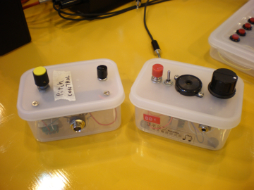 Y-LINK対応機器トランスとトランジスタ、 たった2個の部品で出来ているとてもシンプルな発振器。 それゆえ、ビギナーにも簡単 に作ることが可能で、また工作に詳しい方にとっても、 無限のカスタマイズを約束する モンスター・マシン。たくさん制作すれば、 1台1台を鍵盤の1音に割り当てて、巨大なオルガンを制作するという アメリカン・ドリームも実現出来る逸品。 自分の名前をもじって付けるという、今まで避けてきた 馬鹿馬鹿しいことを、ついにしてしまった記念すべきマシン (おかげで「ヨネミン」と言われるたびに、自分が呼ばれて いるようでドキッとする)。 |