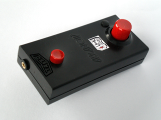 おぉ!これは… 1986年にゲームメーカーのタイトーが発売した ブロックくずしを現代的にアレンジした名作ゲーム 「アルカノイド」がファミコンに移植された際に 付属していた専用コントローラーを、 自作楽器同士をつなげる共通規格Y-LINK対応に 改造したものだね! |