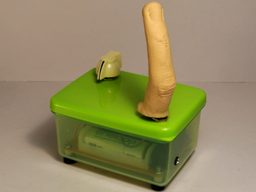 あ〜っ!もういやっ!すごい変な感触…。シワとか血管も浮き出ているし。 でも体の部分を型取って、電子楽器のコントローラーに応用した例って珍しいかもね。 |