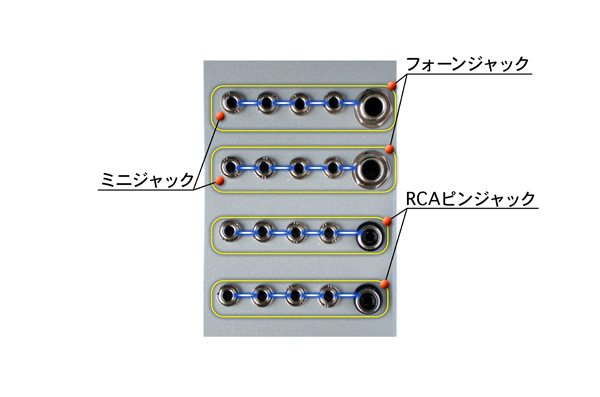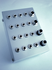 米本: その通り!冴えてるね!これは1台あるとかなり便利だよね。穴あけが大変だったんだけど、これが完成して、よりシステム・シンセに近づいた感じで嬉しかったなぁ~(笑)。基本ミニ・ジャックだけど、一番右側はフォーンとピンになってるから、変換ボックスとしても使えるんだよ。