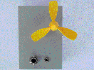 米本: 更に電池をつなぐと回転するので、プロペラを付ければ、あーた、小型の扇風機にもなりますよ!!