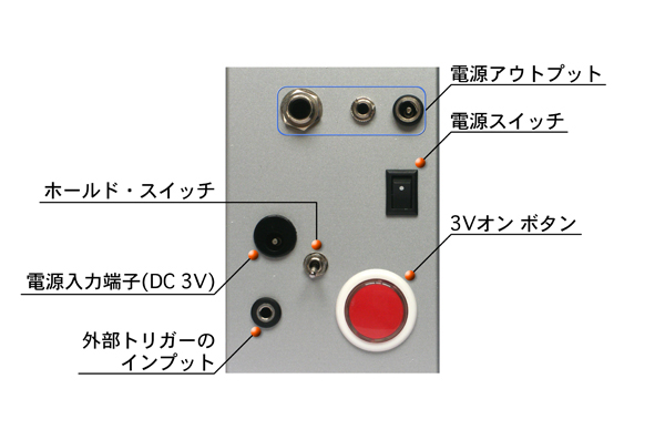 米本: 赤いゲーム機のボタンを押すと、上の端子から3Vが発射される装置、Lenshaの弐号機です。ボタンの色以外は全て同じ機能なので、詳しい説明はLenshaのページをご覧下さい。