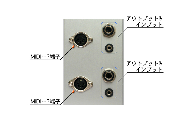 助手: なんだかMIDI端子とジャックが並んでますが…まさか!? 米本: これはMIDIのケーブルをフォーン端子とミニ端子に変換する超ハイテク機器なのよ!しかも独立2系統! 助手: はぁ…。 米本: 見て見て、こんな感じぃ~♪