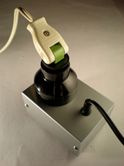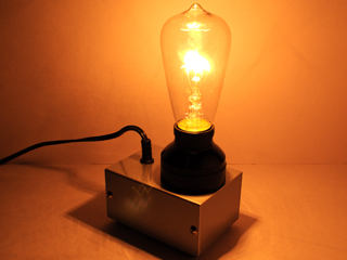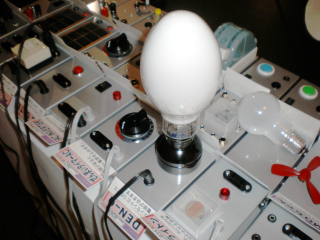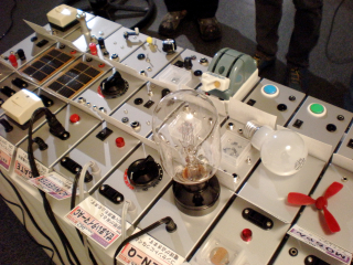 ↓それから2011年3月のMachine Music展のときに、会場のask?オーナーの木邑芳幸さんの電球コレクションから500Wの電球を取り付けてみました。強力な明かりだったので取り付けた様子だけ写真に残しました(笑)。