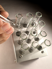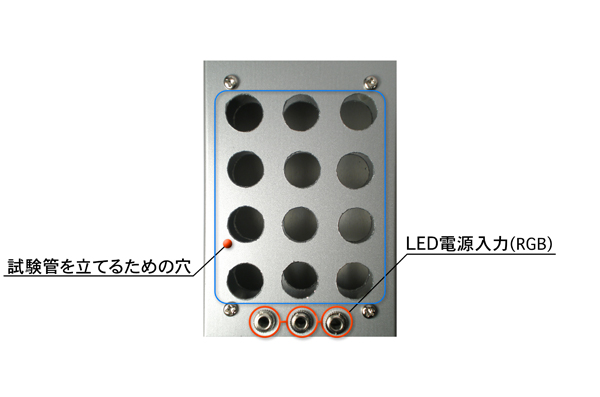 米本: ちょうどこの頃、CHAOSMOS/冨岡雅寛さんに東京・神田にある「高野理化硝子」というお店を教えてもらってね、理化学用品を扱う人なら必ず知ってる超有名店なんだけど、良く通っては使えそうなものを探していたんだ。やっぱり理科の実験道具系は萌えるからね(笑)。 助手: 試験管12本を全部入れて、このユニットを持ったときの感触が何とも…(笑)。