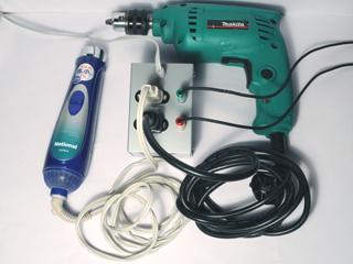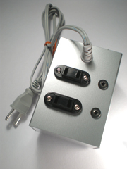 3~5Vの小さな電気信号を受けて、コンセントからの100V電源をON、OFFさせる凶悪なユニット。他のユニットと組み合わせることにより、照明器具や家電製品で音楽を演奏できる…かも!?