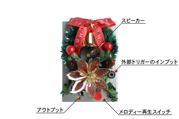米本: 一応、説明させていただくとね、1993年に工作を再び始めた頃、秋葉原の秋月電子通商で購入した"ジングルベル"の電子オルゴールを組み込み、2010年にCAN DOで買ったクリスマスリースを改造して取り付けた、初の季節ものユニット。 助手: クリスマスは好きですけど、特にコメントないです…。 米本: テンション上げて行こうよ!このユニットさえあれば"毎日がクリスマスだったら"状態だよ! 助手: 名曲ですね。 |