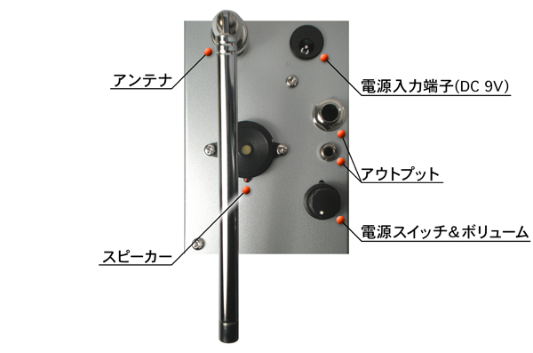 米本: スピーカー付き。外部出力端子有り。アンテナはBNCコネクターになっていて、取り付け・取り外しが快適です。