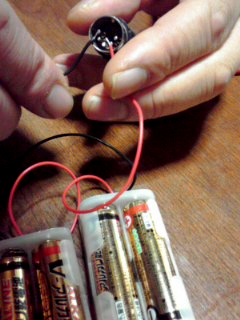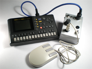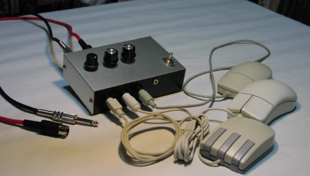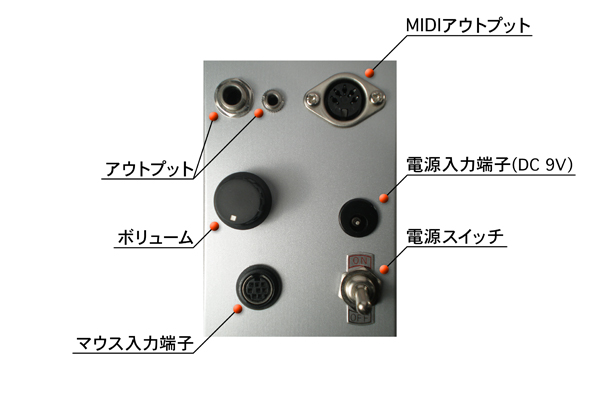 二見: あー、ハンダ吸い取り線でチャタリング(写真:左)させて、MIDIデータもどきを作ったりして。 米本: 私は私で、乾電池につなげた線をMIDI端子(写真:右)へ、小刻みに付けたり放したり(笑)。とにかく小刻みにオン/オフを繰り返す信号させ作ればMIDIとして騙せるだろと。 二見: うわあ、考えられないコトをやるもんだなあ。(・O・) 米本: んで、そうこうしているうちに、せっかくだからちゃんとしたユニットとして形に残したいと思って。二人で秋葉原で集合して、部品を買って工作を始めたんだよね。 二見: そうそう、懐かしいねえ。 そして実験していると、米本さん欲張りだから、「PS/2マウス(ウィンドウズのマウス)とかMACのマウスも」って言い始めたんだよね。で、今のSYSTEM Yよりもちょっと大き目のタカチケースに、とりあえず各社のマウスで使われている端子をボンボンくっつけたんだっけねえ。