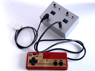 米本: 銀の丸いマイクは以前秋葉原の秋月電子で売っていた心臓の音を拾うマイク、凄い感度で体内の音を拾えるの。あるイベントであなたの心音に合わせて演奏、なんて面白い企画やりましたな(笑)。 |