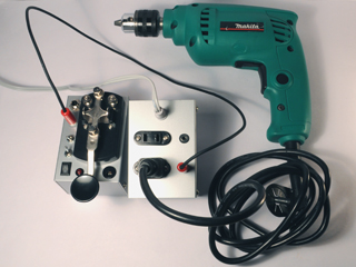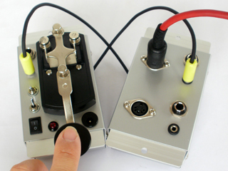 米本: 電鍵くんとパワースイッチャーを接続すると電動ドリルでモールス信号の練習ができるゾ!