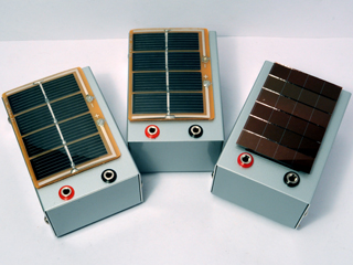 米本: 全部を直列につなげれば、なかなかのパワーだよ(笑)。 秋葉原の千石電商で売っていたソーラーターンテーブルを分解して回転ディスプレイを作ったんだけど、太陽電池の部分が余ったのでユニット化したんだ。