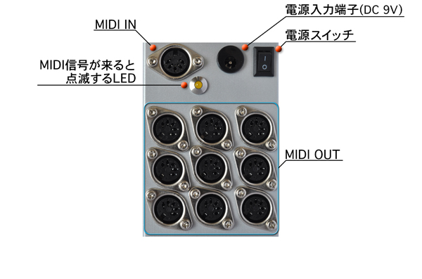 MIDI信号を9つに分岐するパラ・ボックス。