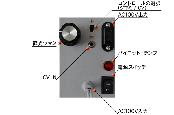 二見信洋さんとのコラボ。 通常の調光器としても使えるが、シンセサイザーからのCVで調光することも可能。