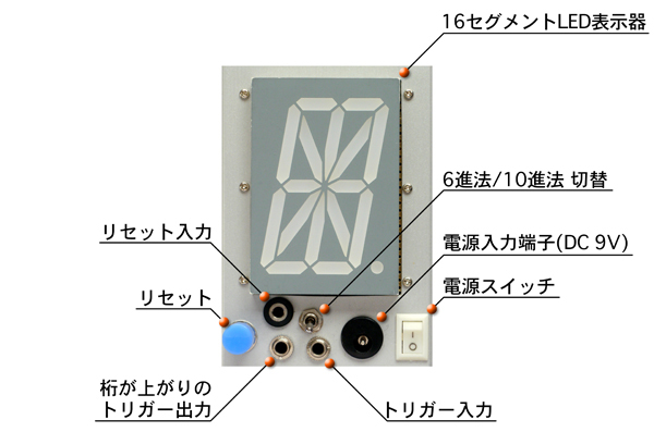 二見信洋さんとのコラボ。 16セグメントの1桁カウンター。6進法、10進法切り替え可。